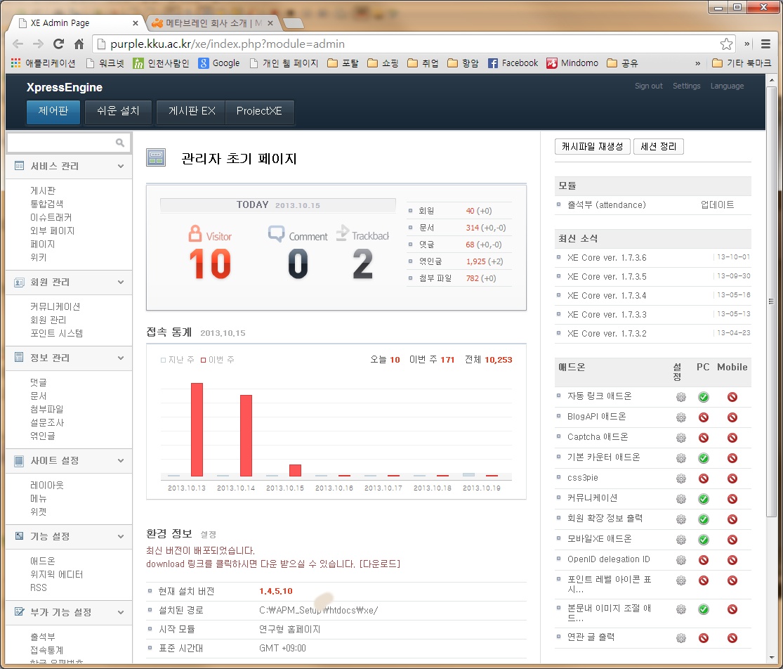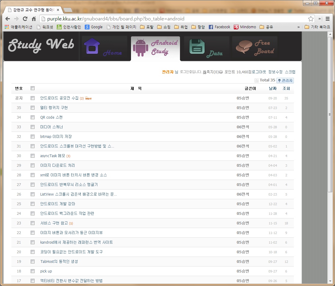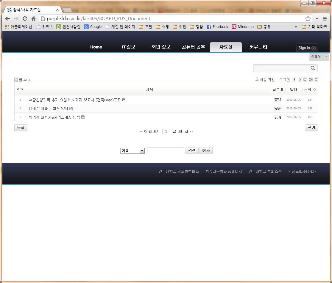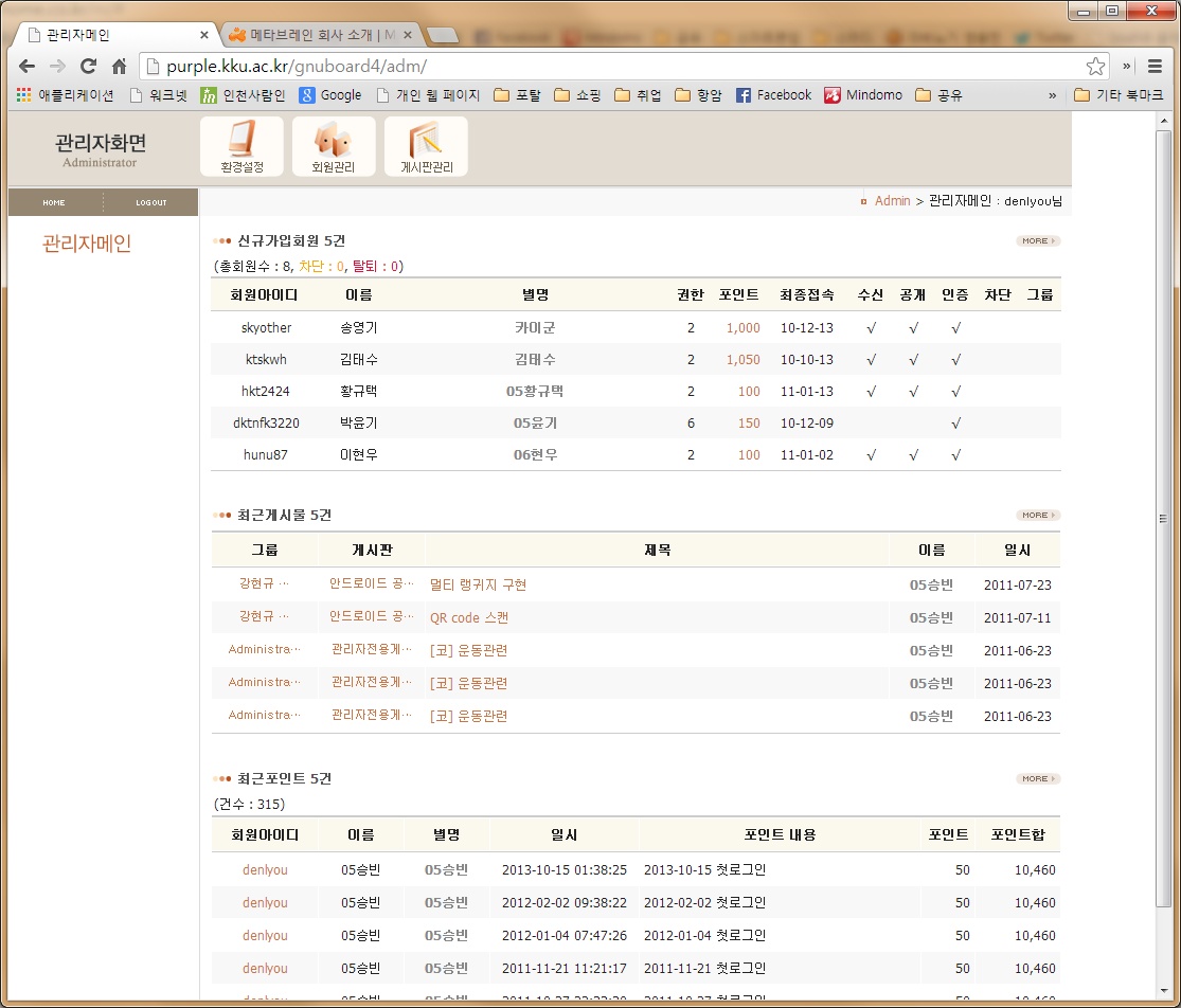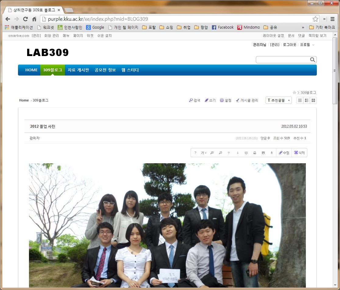 대학시절 학부연구생들간의 정보 및 자료 공유를위해 만들고 사용했던 홈페이지. 공개된 소스의 GNUBoard와 XE(구 제로보드)를 활용하여 제작하고 관리하였다. 나아가 Web용 SVN과 IssueTraker를 연동하여 개발 프로젝트 관리 역활을 하기도 하였다
